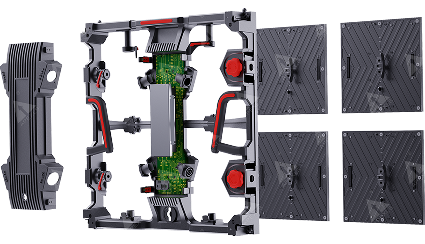 The display features an independent modular structure for both LED modules and control boxes. With magnetic components and quick-lock systems, users can complete front and rear maintenance in seconds. Each module stores its own calibration and configuration data, enabling fast replacement without system recalibration, which saves time and reduces downtime during production.