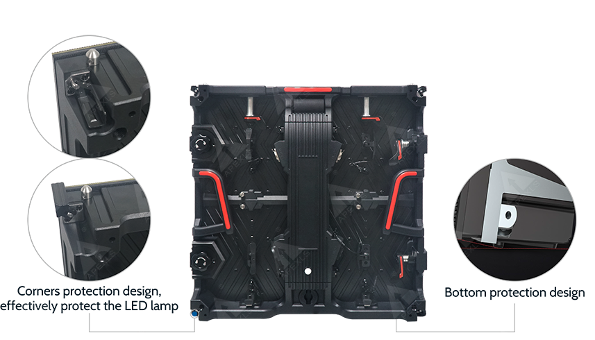 Every LED cabinet corner uses a buffer protection design, minimizing physical damage during assembly and disassembly. The Z-axis calibration and magnetic locking system ensure perfect alignment and secure installation. This design protects delicate LEDs from impact, guaranteeing long service life and stable performance even under frequent setup changes.